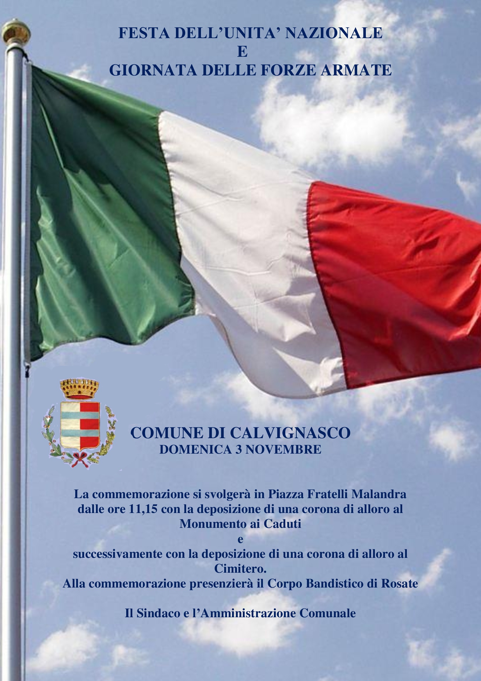 Alla commemorazione presenzierà il Corpo Bandistico di Rosate.